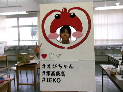 【行事】家高祭の準備進んでいます 投稿日時 : 10/01 校長 10/4(土)開催される家高祭(文化祭)に向けて、校舎の各所で準備が進んでいます。 今日はオープニング動画作成中の生徒会、授業の発表準備中の3年生、本校キャラクターの「えびちゃん」の顔はめパネル制作中の先生たちのところにお邪魔しました。 楽しそうに準備しているみんなの表情を見ると本当に嬉しくなります!本番が楽しみです!!