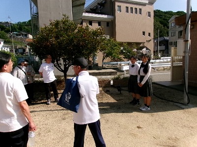 自然が豊かな家島高校、夏とはいえ落ち葉もなかなかの量になりますが、ほうきを持って綺麗にしてくれています。本当に素敵な生徒たち。奉仕の精神に頭が下がります。先日は美化委員でない生徒も参加してくれていました。その時の写真も一緒にご披露!(学年通信第4号でも様子がわかります)。