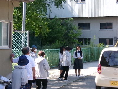 始業前に2年生の生徒たちが校舎の周りを掃除してくれていました。