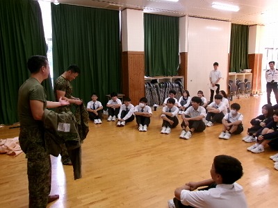 7月3日(木)3,4校時に飾磨消防署家島出張所の消防士さんのご指導のもと避難訓練を行いました。