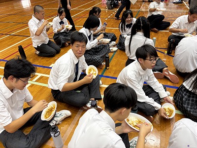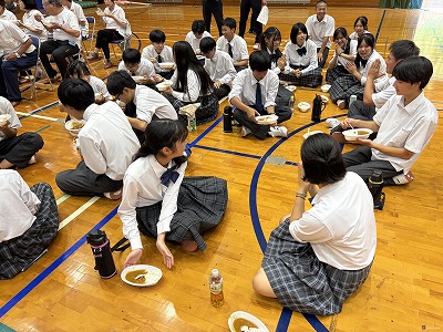 実は、これは生徒会が考えてくれたプログラム。昨年が球技大会だったこともあり、勝敗を争う内容をと考えがちですが、今年度の生徒数と熱中症対策とを考慮して、全員が安全に楽しめる内容に!ということで知恵を絞ってくれました。柔軟で素晴らしい発想!全校生徒が楽しめるイベントになりました。生徒会の皆さん本当にありがとう!