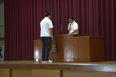 【ウエイトリフティング部】国民スポーツ大会出場壮行会 投稿日時 : 10/01 部活動 カテゴリ:ウエイトリフティング部 10/1(水)6校時、全校集会の後に、壮行会が行われました。 ウエイトリフティング部2年の岡田勇人さんは「初の国スポ出場で緊張するが、全力を尽くす!」との決意を語り、全校生で岡田さんの活躍を祈って応援しました。 今回は顧問の原先生も出場します。師弟で活躍を期待します。(国スポ出場についての記事はこちら) タグ 壮行会