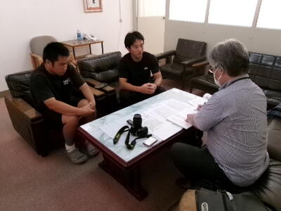 この度の本校ウエイトリフティング部、岡田選手(2年生)と顧問の原教諭の国民スポーツ大会への師弟同時出場決定について、朝日新聞の記者さんが取材に来られました。