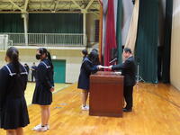 また、生徒会解任認証式も行いました。後期生徒会期間では球技大会や文化祭などがあります。全校生にとってよりよい学校生活を送れるように積極的な活動を期待します。