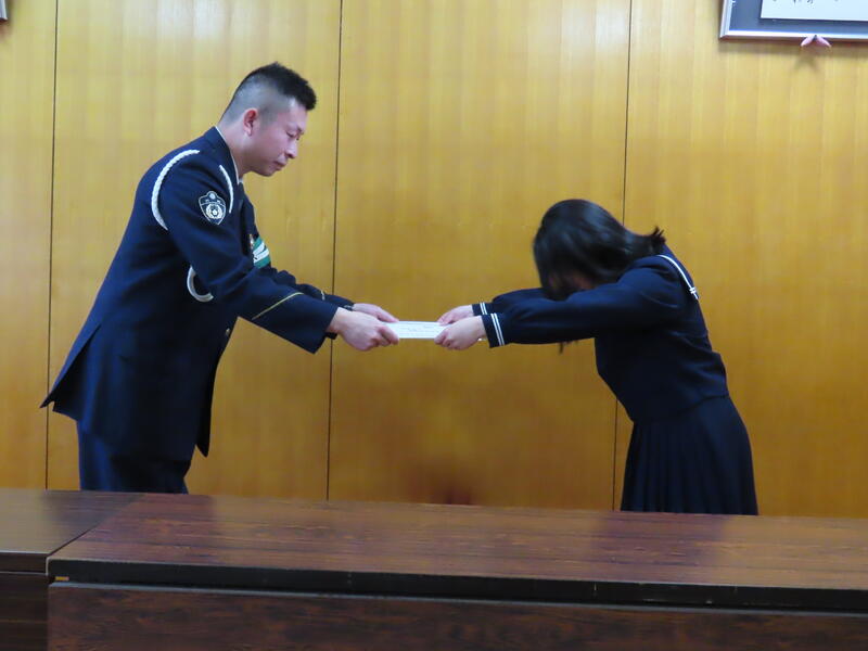 生徒の皆さんが、交通マナーを意識しながら登下校してきた成果が形となったものです。日々の小さな心がけが、自分自身の安全だけでなく、地域の方々の安心にもつながっています。