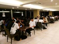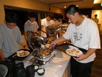 長旅の疲れを吹き飛ばすビュッフェとレクリエーションで、生徒たちは1日を締めくくっていました。