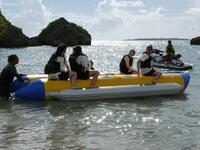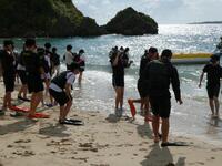 マリンスポーツに参加する生徒たちはバナナボートを体験する組、シュノーケリングから始める組の二手に分かれました。