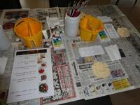 マリンスポーツに参加しない生徒たちは、沖縄のお守り、シーサーの色付け体験を行いました。