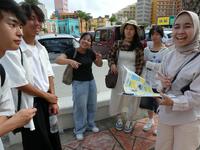 初めは恥ずかしがっていた生徒たちも、一緒に街を回る中で段々と打ち解けて楽しそう。