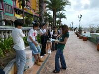 7班に分かれてそれぞれに1人ずつ英語話者が付いての街中散策です。