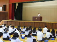 校長先生や生徒指導部長の先生から1学期のことや夏休みの過ごし方についてお話がありました。9月の始業式でもまたみんなの元気な顔が見られることを期待します。
