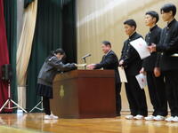 校長先生、生徒指導部長の先生の話をきいて、生徒全員が充実した冬休みを送ることに期待します。