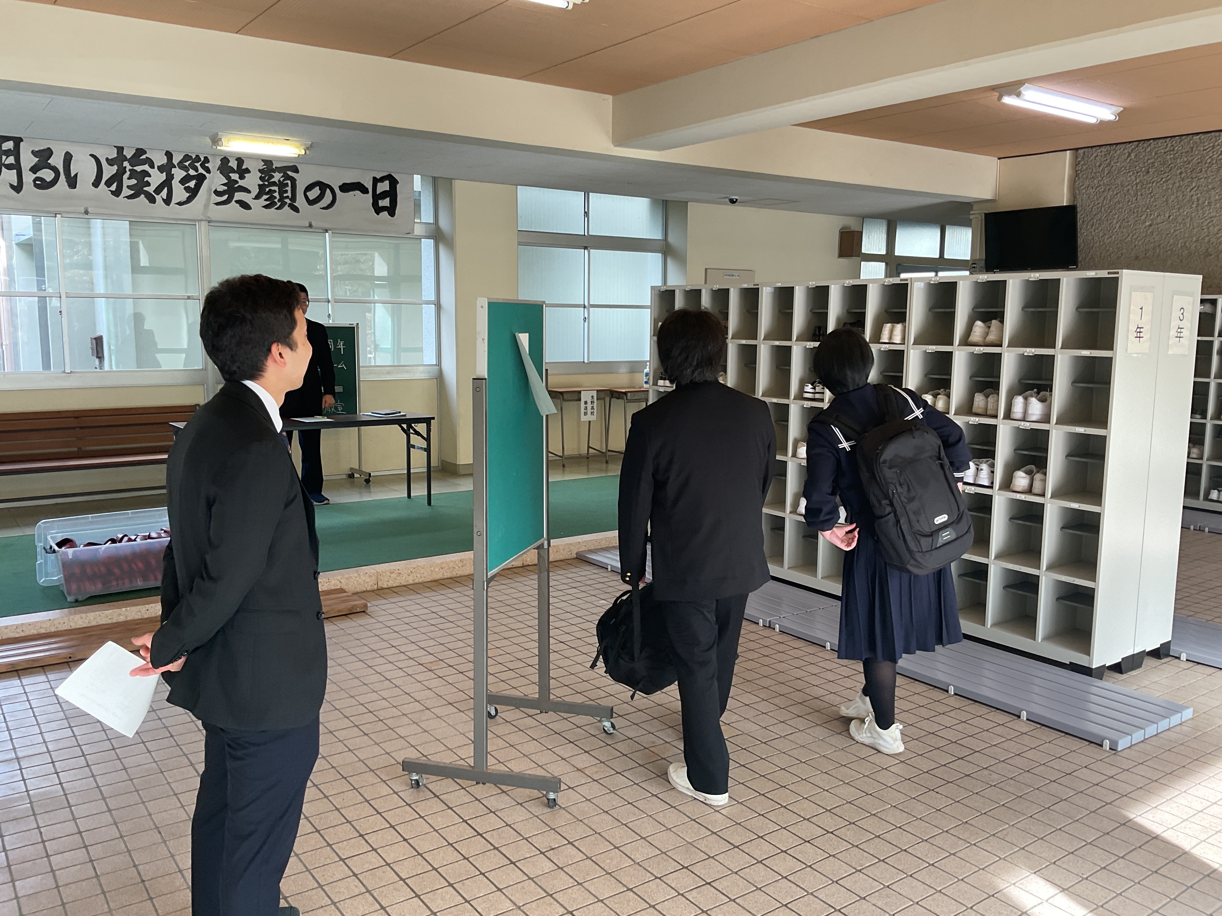 その後は、各教室にわかれ、担任紹介や呼名確認を行い提出書類の回収や通学路の確認、生徒会による女子制服のリボンの結び方の説明を行い、入学に向けた準備が整っていくのを実感しました。