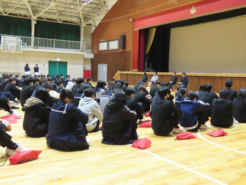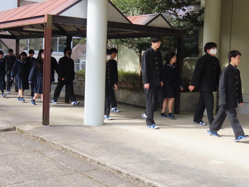 その後、体育館へ避難・点呼し校長先生の講話をいただき終了しました。