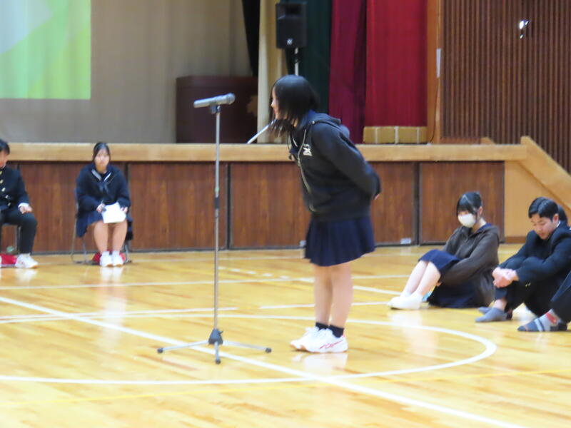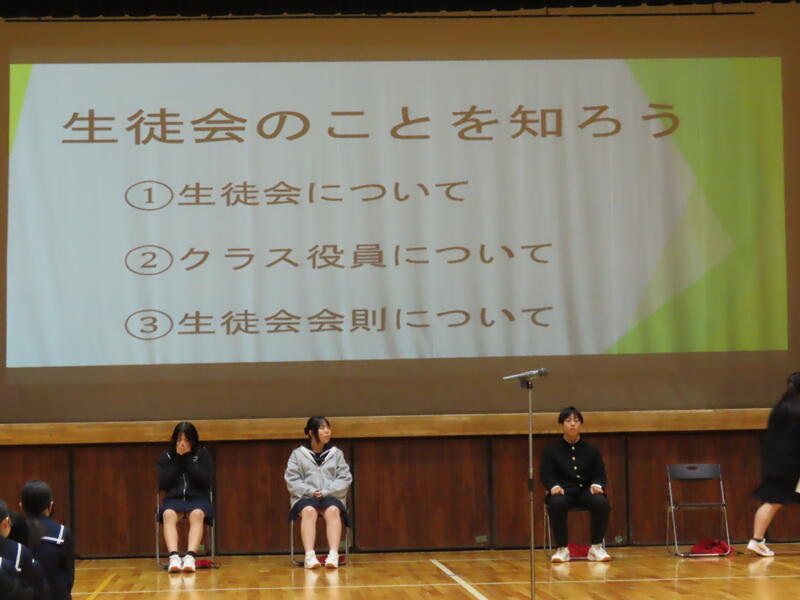 続いて行われた生徒会入会式では生徒会執行部の皆さんが中心となり生徒会の活動内容の説明がされ、新入生も真剣な様子で耳を傾けていました。