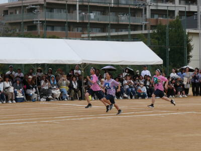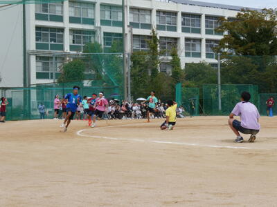 会場中が息をのむ中、各学年の代表ランナーたちがバトンを手に全力疾走しました