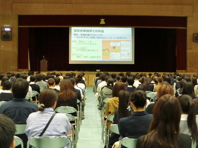 10月24日(金)に、1年次の総合校外学習を実施しました。今年度は、DX①、DX②、福祉、歴史、芸術・デザイン、化学、防災、こども、医療看護、工学、食物の12領域にわかれ、大学や企業等をバスで訪問しました。