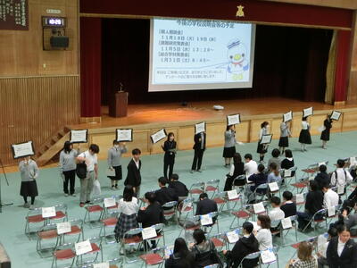 出発前には体育館に集合し、避難経路や注意点などについて、地図を用いた全体説明が行われました。