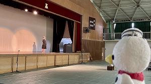 落語の体験コーナーでは、2年生の生徒と、3年生の担任の先生が選ばれ、