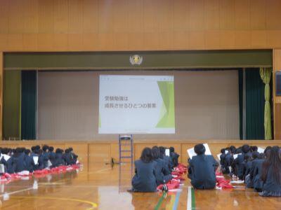 12月10日(水)、後期第Ⅱ中間考査の終了後、3年次の共通テスト集会を行いました。