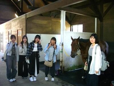 早朝に神戸空港、伊丹空港に分かれて集合、出発し、無事新千歳空港に到着後、すぐにバスに乗り込み、ノーザンホースパークにてクラス写真撮影、ジンギスカン料理の昼食、そして、その後公園内を散策して楽しみました。