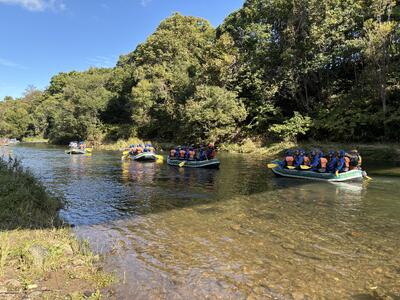 24日の天気も穏やかな好天で、今日は午前も午後もアクティビティ体験を行いました。ラフティング、乗馬、トレッキング、マウンテンバイク等に挑戦しました。
