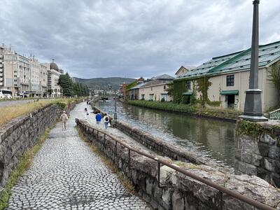 旅行最終日の今日は朝食をとってバスに乗り込みホテルを出発、小樽観光に行きます。留寿都は朝雨が降っていましたが、小樽に着くと、何とやみました。