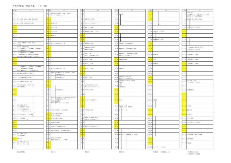 月別予定表