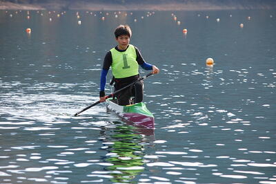 11月8日(土)から9日(日)まで兵庫県高等学校カヌースプリント新人選手権大会が音水湖カヌー競技場で行われました。本校から2年生の谷口澪鳳さんと1年生の尾前大翔さんが出場しました。8日は予選、準決勝が行われ、9日は決勝レースがありました。決勝当日は雨で肌寒く、体調管理が難しいコンディションでした。その中で2人とも練習の成果をしっかり出すことが出来ました。2年生の谷口さんは3000m種目で優勝し、来年3月に行われる全国選抜大会の出場権を獲得しました。応援に来ていた皆様ありがとうございました。引き続きよろしくお願いいたします。