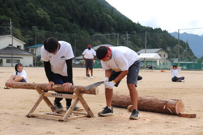 丸太切り競争 男子1位:尾前大翔(1年生)