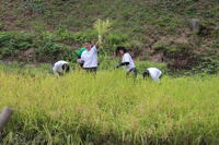 9月8日(月)午後、宍粟市波賀町の飯見の棚田にて稲刈り体験をしました。