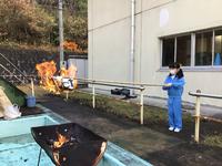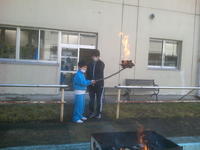 どんど焼きに込められている願い等のお話を聞いた後は、クラス毎に自分の書き初めを竹の棒に刺して燃やしました。