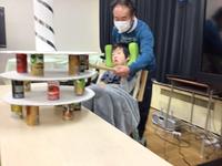 第二場面はにわとりの3兄弟の役になって大きなホールケーキにいちごを飾り付けたり、タブレット端末を操作して車のおもちゃを動かしたりしました。しっかり身体を支えて手を動かしました!