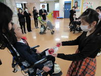 17日の卒業式では、小学部1名と中学部3名の友だちをお祝いしました。寂しさもありますがまた会おうね、と話して見送りました。
