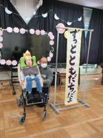 本校での初めての運動会でしたが、毎日の練習を頑張ってきました。敵の忍者の登場曲が流れるとニコッと笑顔がみられ、「大変だ、大変だ、敵の忍者が現れた!」と、セリフを口にするくらい意欲があふれるようになっていました。本番では見事なコントロールでした!