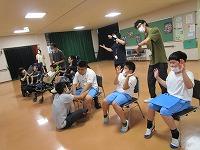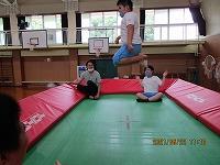 大きなトランポリンで跳びました。高さに緊張する児童もいれば、大胆に踏み込んで高く跳ぶ児童もいました。