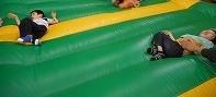 大きなエアートランポリンがありました。とてもフカフカで何度も乗って跳びました。