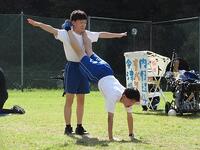 運動会の学年演技である組体操では、難易度の高い技にも取り組みました。お互いを信頼しながら体を支え合って『すべり台』も大成功でした。