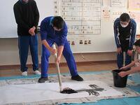 美術の授業で大きな筆を使って書き初めをしました。今年の干支にちなんだ「うま」の字をどうやって書くか、クラスのみんなで考え、協力して一筆ずつ力強く書きました。大きな文字の周りにはそれぞれ一年の抱負も書きました。達成できるように毎日頑張っていきましょう!
