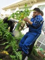 生活単元学習では、2学期から育ててきた大根の収穫をしました。想像以上に立派に育った大根を見て驚きながらも、みんなで協力して引き抜き、泥で服が汚れるのも気にせず熱心に水洗いをし、土を落として葉を切るなど、販売に向けた準備を丁寧に進めることができました。