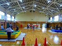 12日、豊岡聴覚特別支援学校小学部と交流会をしました。まず最初に名前と学年の自己紹介をしてから、2グループに分かれました。1グループは体育館でトランポリンをしました。みんな歓声を上げながら楽しんでいました。