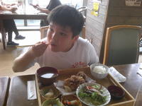 お昼ご飯は竜田揚げ定食を食べました。みんな美味しそうにたくさん食べていました。