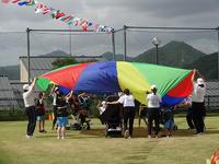 開会式では、やっぱり高学年だという表情をしていました。小学部演技での火遁の術。うまくいくかちょっぴり心配でしたが、なんのその、すぐにスイッチを押して、大成功でした。パラバルーンもきれいにできて見事免許皆伝。演技も大成功!!