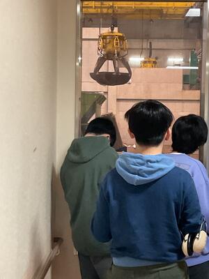 なかでも、生徒たちが特に興味を持ってみていたのが、大きなクレーンで大量のごみをつかみ、混ぜている様子です。高い場所から、動くクレーンやごみをつかんで持ち上げる迫力ある動きに、思わず身を乗り出して見つめる姿もみられました。「すごい」「大きい」といった声も聞こえ、普段みることのできない設備に目を輝かせていました。