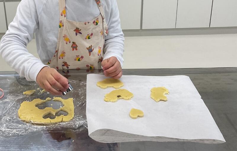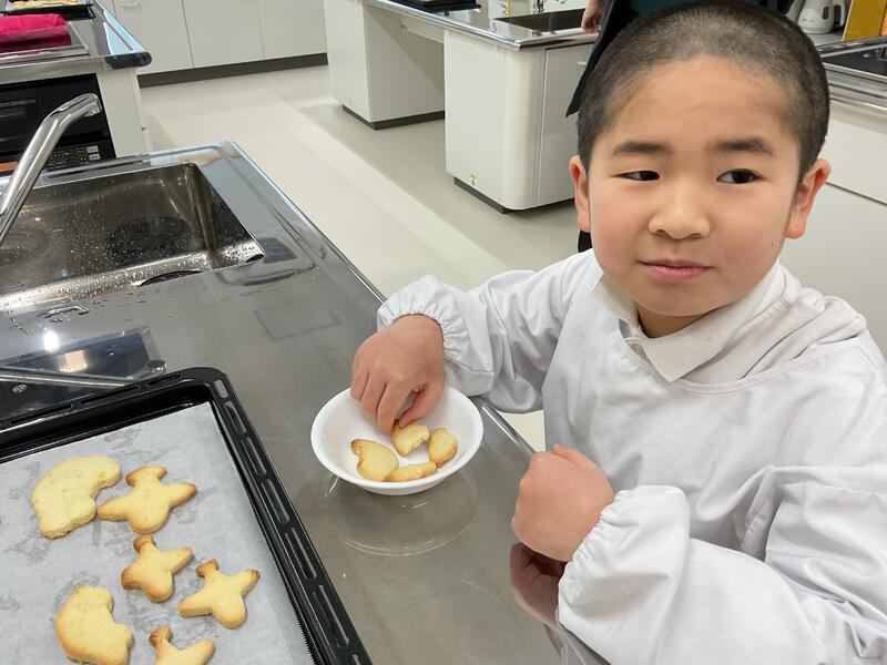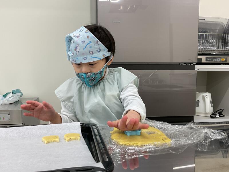 さつまいもクッキー作りをしました。それぞれが好きな型を選んで楽しそうに型抜きしました。その後は自分たちで作ったクッキーを美味しそうに食べました。使った型やお皿を洗って拭いたり、台拭きをしたりなど片付けもできました。その様子をぜひご覧ください。