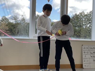 1月は、学級活動で書き初めをしたり、生活単元学習で鏡もちゲームをしました。好きな文字を書いて、書き初めをしました。鏡もちゲームでは、クラスのみんなで協力して、紐にお餅を通して、隣の友達に受け渡して、鏡もち1段目、2段目、ゆずをのせて、完成させました✨お正月ならではの遊びを楽しみました。