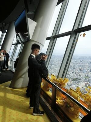 スカイツリーのあまりの高さに信じられない!といった表情の生徒が多かったです。