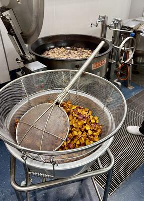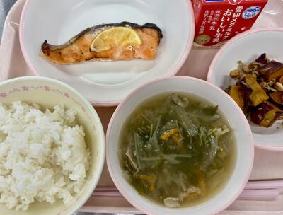 給食は、収穫体験に合わせてさつまいもメニューでした!子ども達がお芋ほりを頑張っている間、給食室では堂阪ファームさんのさつまいもを使った美味しい「さつまいもといりこの揚げ和え」が作られていました!
