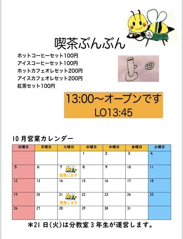 令和7年度の分教室カフェ「喫茶ぶんぶん」の営業予定