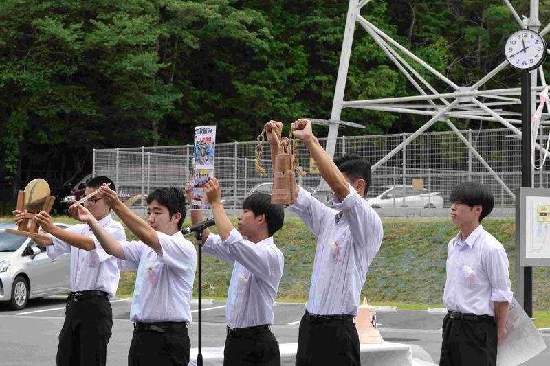 両校の発表の後、いよいよ鐘の音色の披露です。両校の代表生徒が鐘を鳴らし、場内から大きな拍手が湧き上がりました。